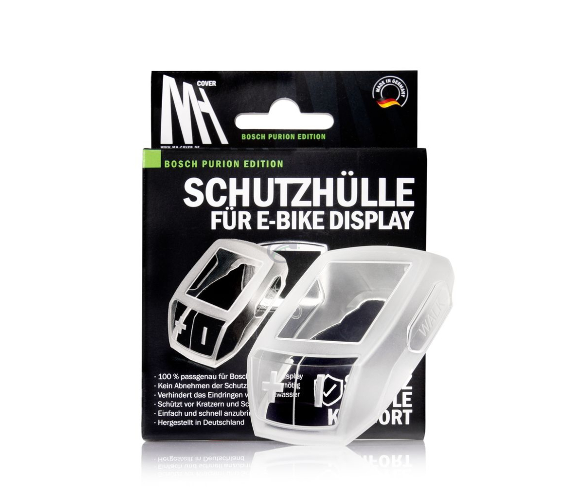Die Hülle besteht aus flexiblem Kunststoff (PVC), einem langlebigen, abriebfesten und formstabilen Material. Dank der präzisen Passform bleibt das Display vollständig bedienbar und klar ablesbar. Die Montage ist einfach und schnell, ganz ohne Werkzeug. Einmal angebracht, muss die Abdeckung nicht mehr entfernt werden, Ihr Display bleibt dauerhaft geschützt, sowohl während der Fahrt als auch beim Transport oder Abstellen des Fahrrads.