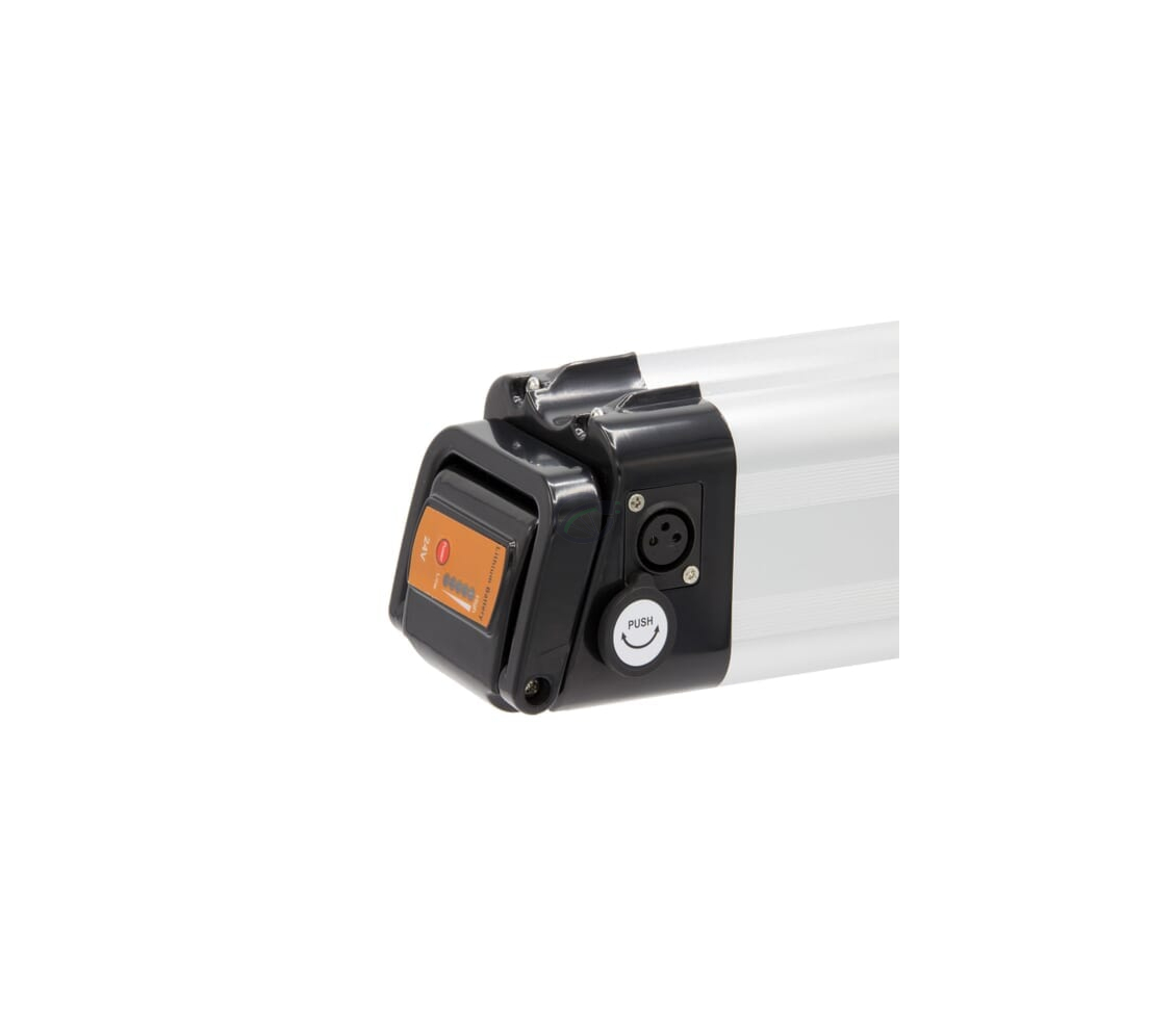 Der Phylion Akku XH259-10J 24V 13Ah Silverfish hat ein silbernes Design mit schwarzen Blenden an den Enden. Dieses Aussehen hat dem Akku den Namen "Silverfish" gegeben. Der Fahrrad Akku hat eine rechteckige, längliche Form und ist daher leicht zu tragen.