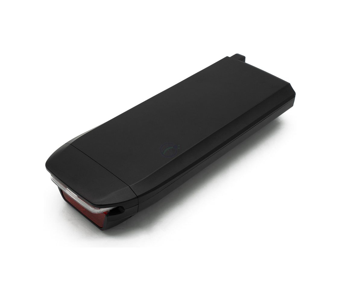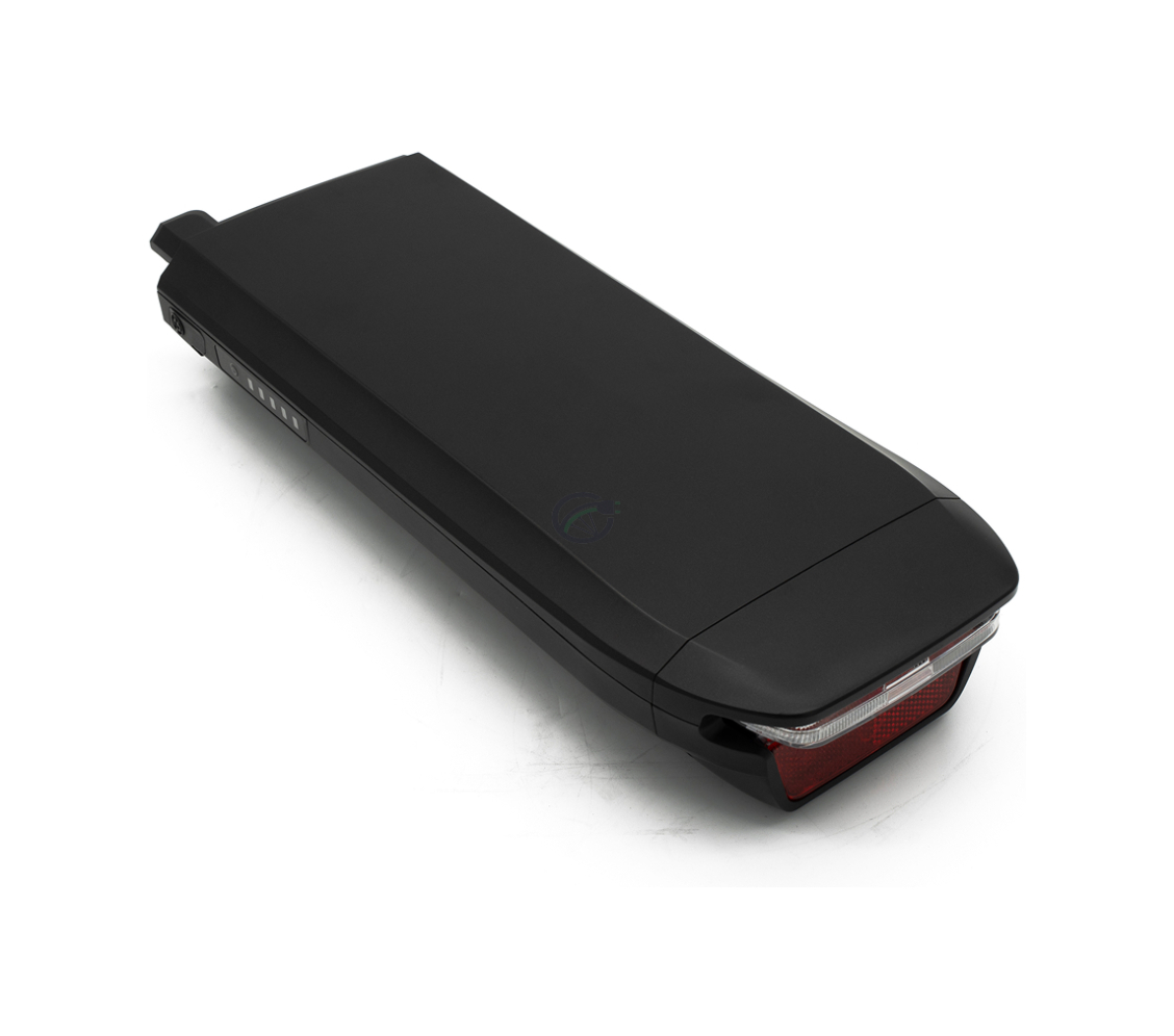 Der Akku verfügt über ein schlankes Design, das gut zum Design des Fahrrads passt. Darüber hinaus ist der Akku mit einem integrierten Rücklicht und Reflektor ausgestattet. Das Rücklicht wird direkt vom Akku selbst gespeist, sodass keine separaten Batterien benötigt werden. Der Akku verfügt über eine Gesamtleistung von 576Wh. Dadurch eignet sich der Akku für längere Fahrradtouren. Dank des Plug-&-Play-Prinzips ist der Akku einfach zu verwenden: aufladen, auf den Gepäckträger setzen und direkt losfahren.